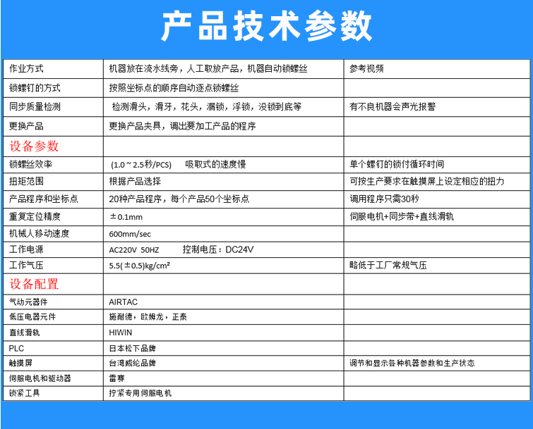 - 智能數控:機械按照坐標點自動移動并鎖付產品