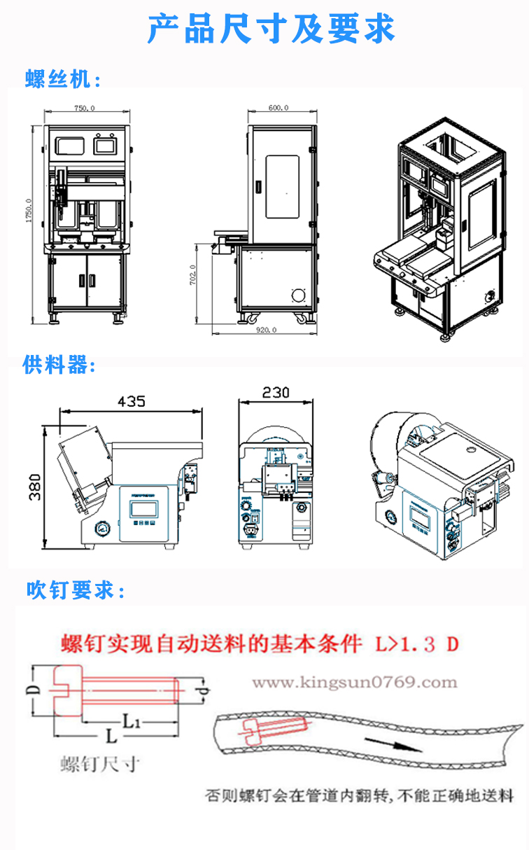 - 自動送釘:人工只需把螺釘倒入料斗,送釘機構會自動供釘