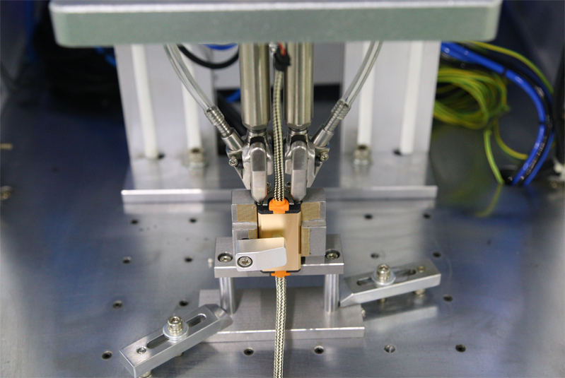 電源線鎖螺絲機這一方案選用了多頭自動鎖附的方式,一次可同時擰緊兩顆螺絲。因為需要擰螺絲的產品處于本體的中間部分,所以在設計夾具的時候也把前后兩端的位置預留出來,防止影響到產品鎖附時因放置不平整而出現鎖歪現象。采用了一出二的供料方式,一次輸送兩顆螺絲到指定位置。速度快不易卡釘。自動鎖螺絲機還可以直接放置在生產線旁邊,當產品螺絲擰緊作業完成后,直接可放到流水線上,傳輸到下一個需要作業的工位,生產效率有效提升。